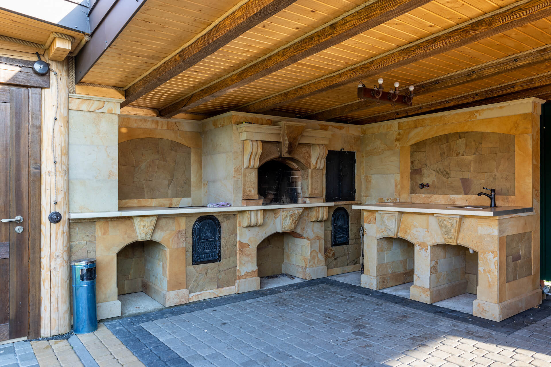 Мала зона бабекю до 10 людей. Дві великі зони бабекю до 20 людей кожна.