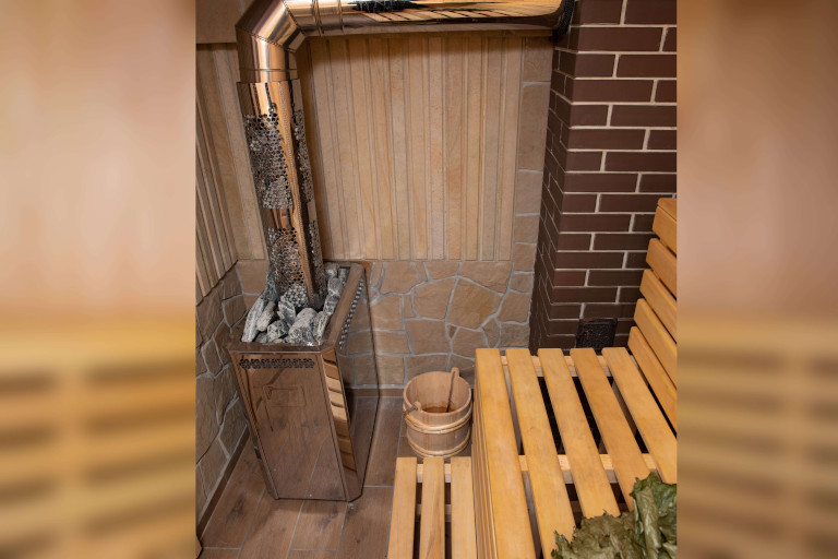 Оксамитове м'яке тепло забезпечує топка на дровах. Оптимальну температуру у 92 градуси, лазня тримає без підігріву 2 год 30 хвилин.